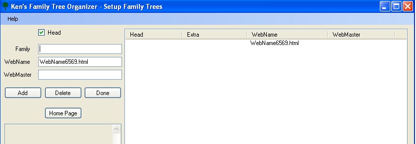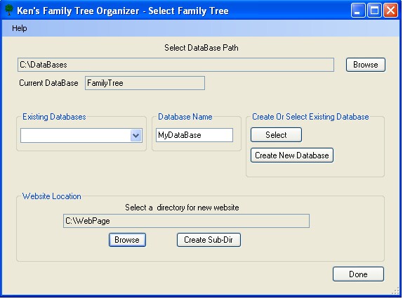 Click 'Done' and you're ready to start filling in your tree. Use the Help menus for guidance through the options. |